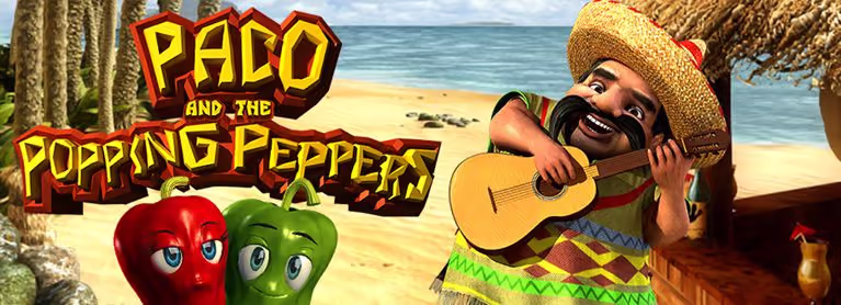 Paco and the Popping Peppers Slots brings playful Mexican flair to a 3D, 5-reel, video-slot experience that’s all about colorful characters, crunchy sound effects, and quick-fire bonus action. With 30 fixed paylines and a cheerful cast of symbols — from Donkey Piñata and Tiki Huts to Garlic, Onion, and the spicy Peeper — this title keeps the vibe bright while giving you plenty of ways to win. Betsoft’s signature cinematic look makes each spin feel like a mini-adventure, and the game is easy to pick up whether you’re new to online slots or a seasoned spinner.
